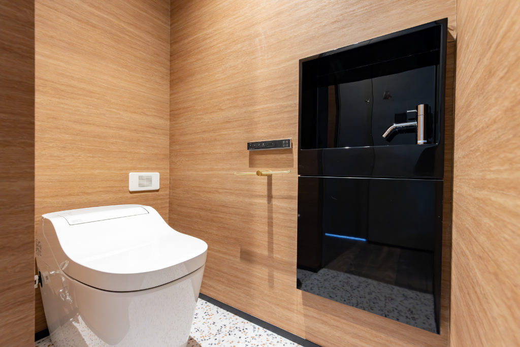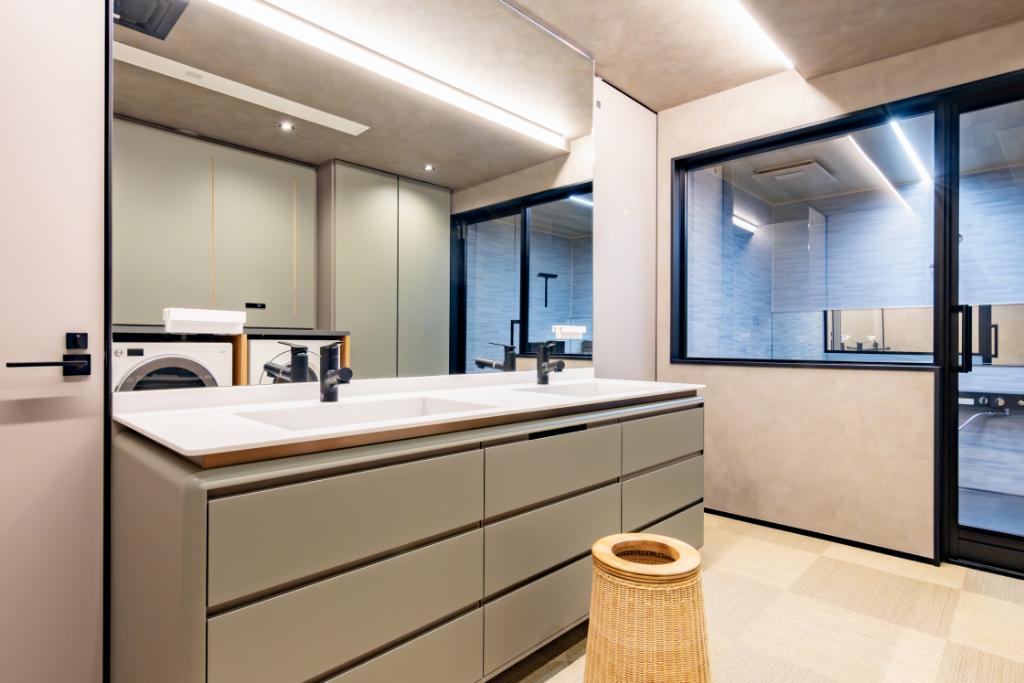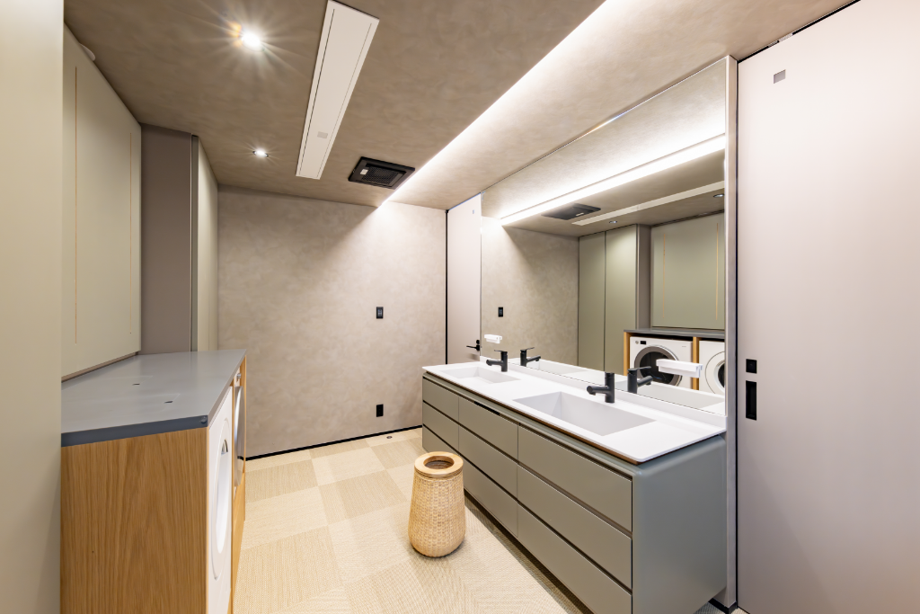KTカップボードや洗面化粧台も奥様自身が設計や施工に携わり、奥様自ら塗装されました。