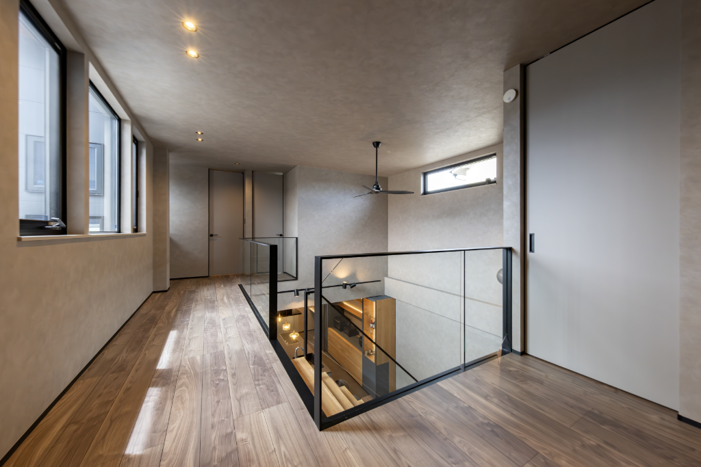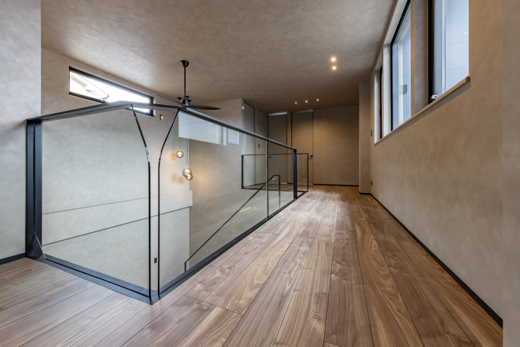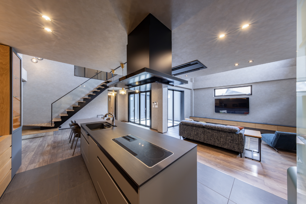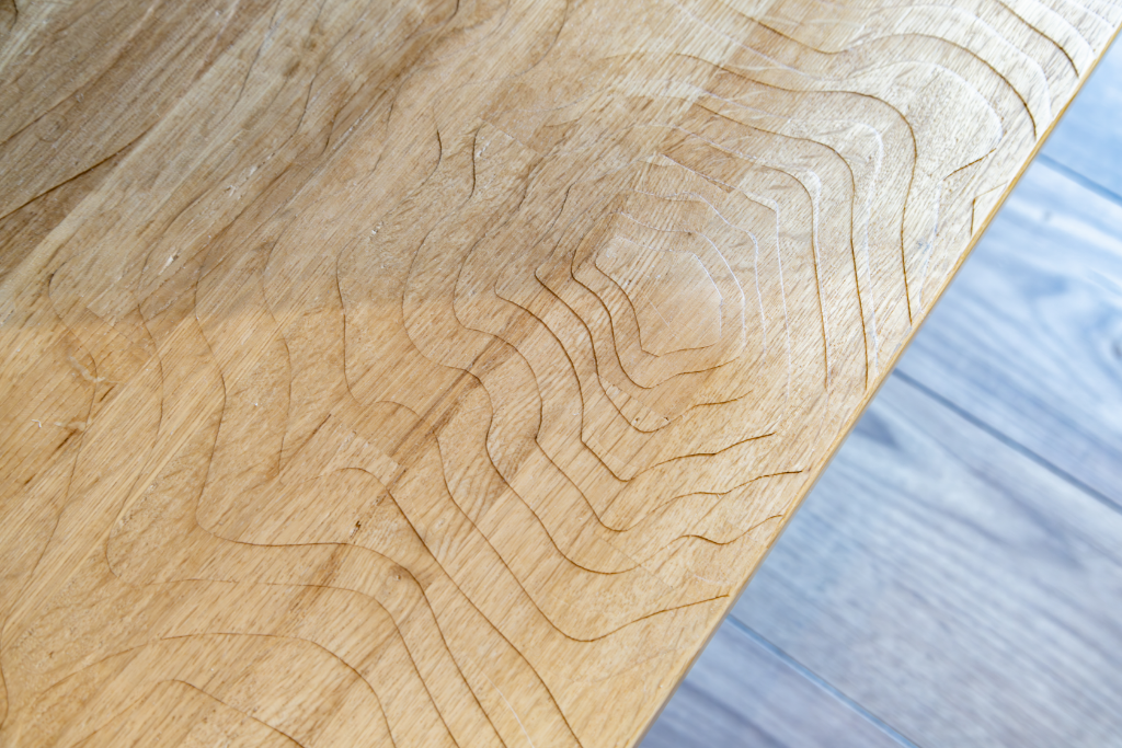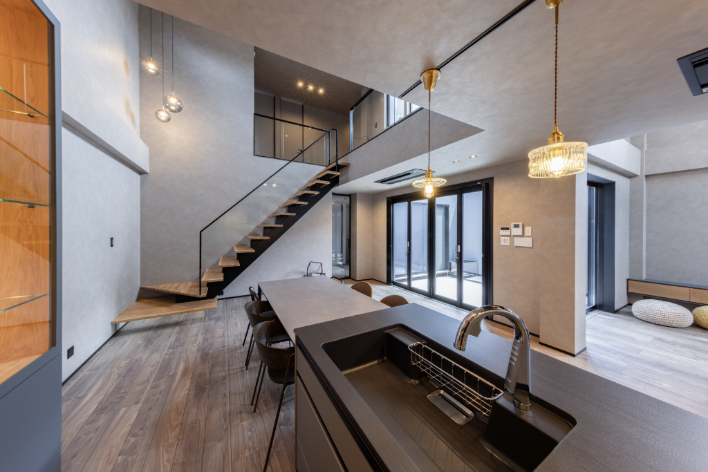 階段の踏板には海外の地形図をモチーフにデザインされており家具屋さんならではの仕上がりになっています。