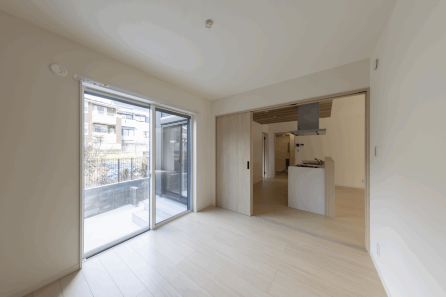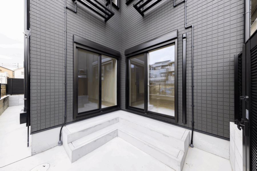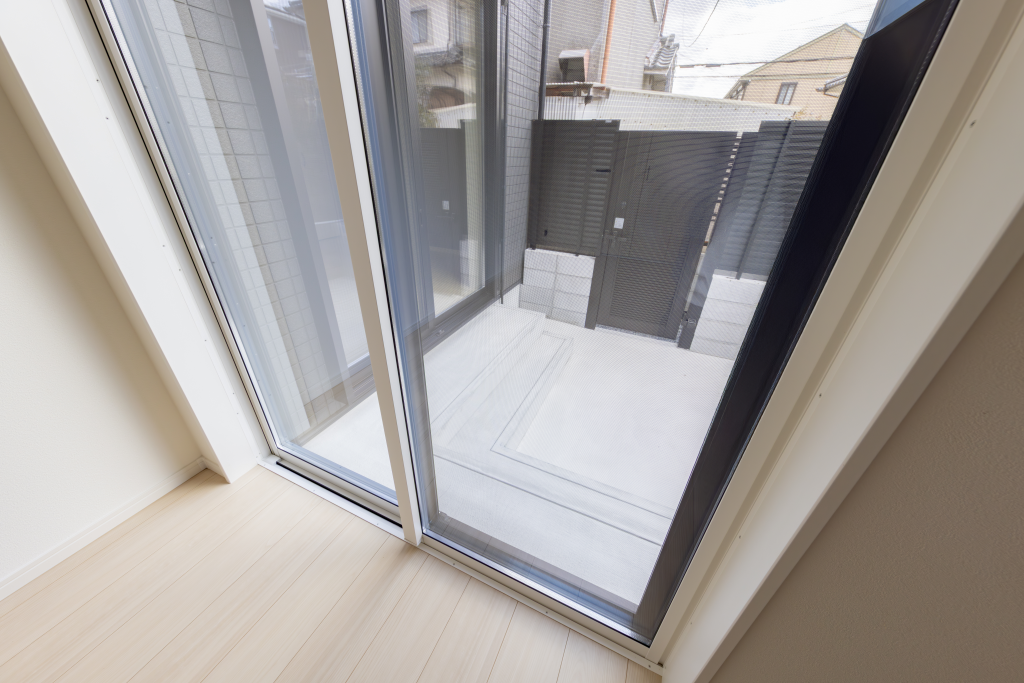 1階のお部屋からは、建物の表側・裏側どちらにも庭を配置。