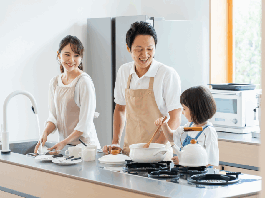 洗濯・料理・掃除のストレスを減らし、笑顔が増える家づくりを目指しましょう。