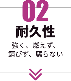 室内に暑さ・寒さを伝えず、構造体と仕上げ材が密着していますから「内部結露」の心配はなくコンクリートは腐ることがありません。