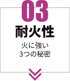 外からの火災に強いことはもちろん、中からの火災に対してもコンクリートの壁、床、天井が一つ防火区画の役割を果たすため、火が外に出るのを防ぎ、被害を最小限に食い止めることができます安心です。