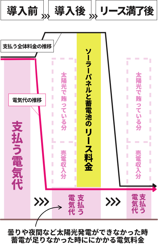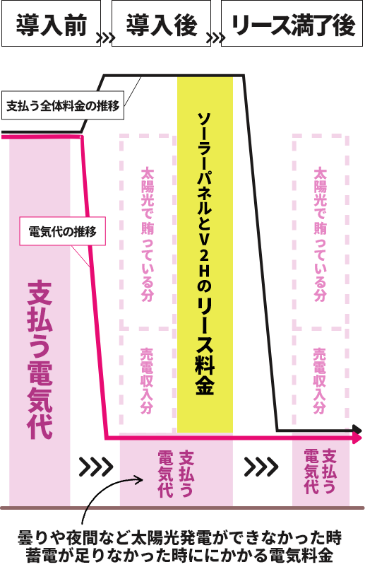 余った電気は売電して収入になるため、今の電気代と変わらず導入ができます。