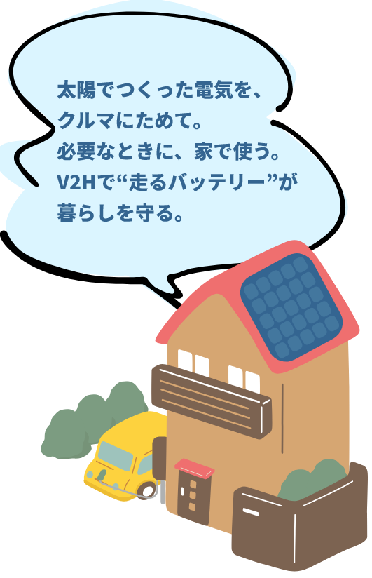 | ソーラー+V2H | 月額 13,000円~ | EVを家庭用電源に |