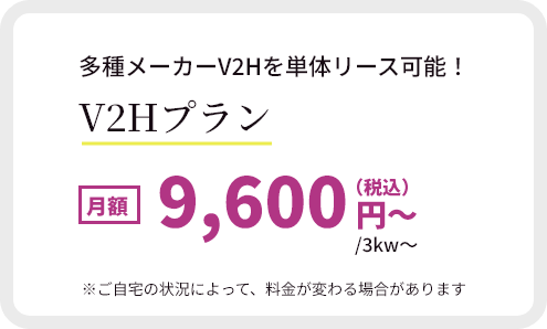 | V2Hプラン | 月額 9,600円~ | EVを蓄電池として活用 |