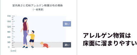 ハウスダストやアレルゲンが溜まりやすい床面から排気をすることで、