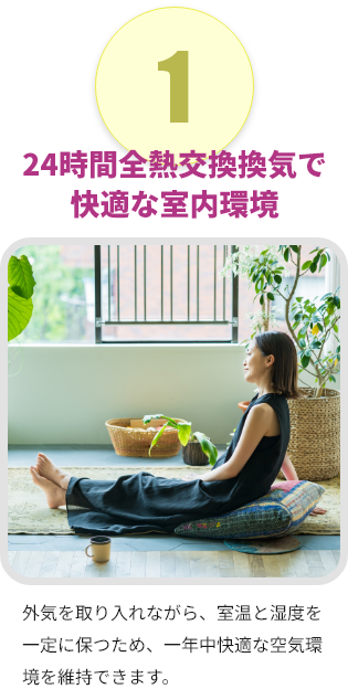 どの部屋にいても空気が澄み、家族みんなが深呼吸できる空間を実現します。