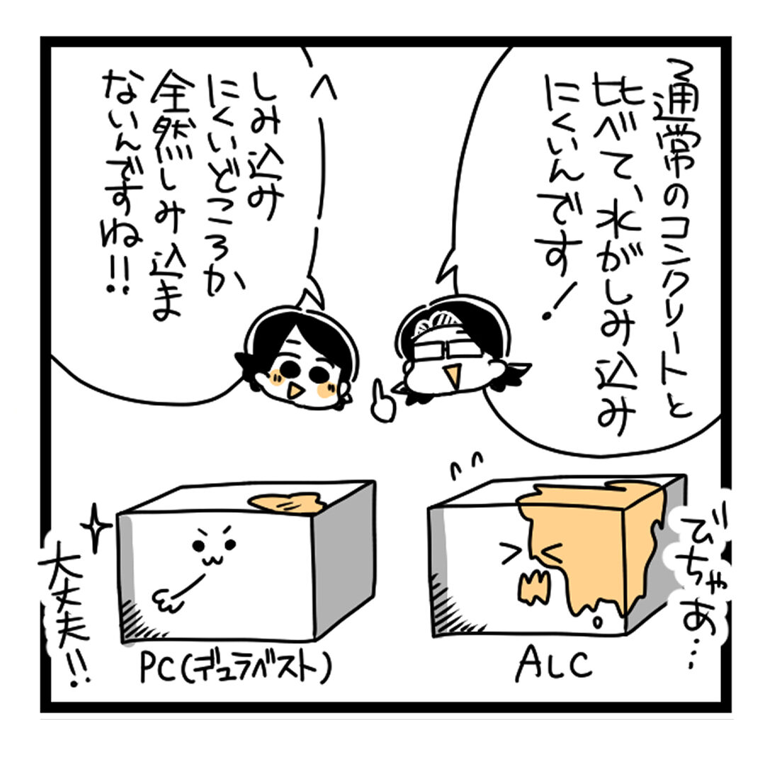 デュラベストのPCパネルは一般に使用されているコンクリートよりも水が染み込みにくいので鉄筋が痛みにくいんです!